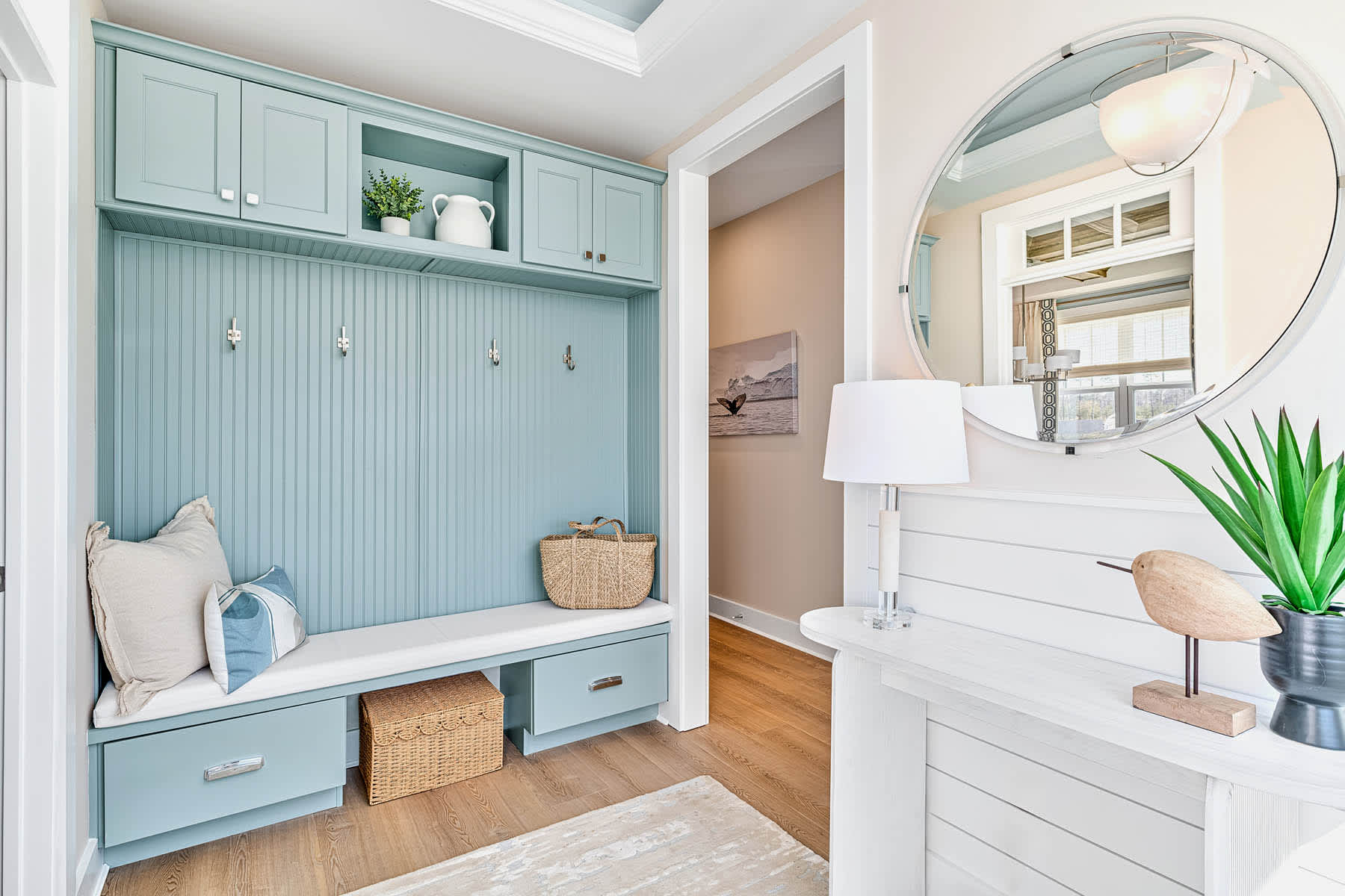 These Medium and Gray cabinets for the 2021 Exhibit Booth home were provided by Wellborn Cabinet, Inc.